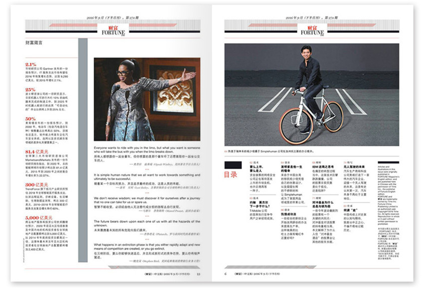 一本由美國人亨利?魯斯創(chuàng)辦于1930年(庚午年),主要刊登經濟問題研究文章的雜志。現隸屬時代華納集團旗下的時代公司,由美國時代公司(TimeInc.)和香港中詢公司合作出版。是國有和外資企業(yè)管理人員,金融和貿易的專業(yè)人員,各級政府官員的刊物。