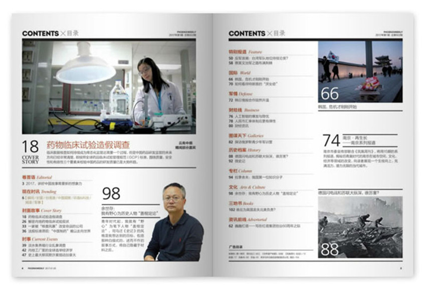 鳳凰周刊雜志作為一本連接內地與香港澳門臺灣三地的刊物,致力于打造一種華人圈新的對于時事文化報道的態度與立場,以雜志文本與VCD光盤互動的新鮮閱讀方式,揭示影響中國以及世界的重大事件,非常人物,以及華人圈關注的政經新聞。