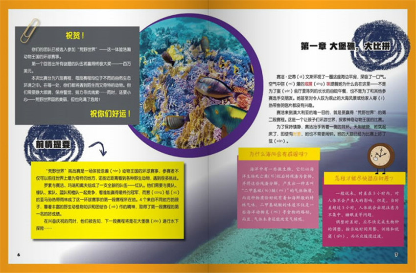 “荒野世界”挑戰賽是一場體驗浩瀚動物王國的環球賽事,參賽者不僅可以前往世界上奇特的地方,還能近距離看到各種野生動物,遇到很多挑戰。羅素與賽潔、瑪瑞和戴夫組成了一支全新的隊伍一紅隊,他們需要與黃隊、綠隊、紫隊、藍隊和橙隊起競爭,看誰能贏得終的冠軍,而蔥郁的亞馬孫熱帶雨林成了這一環球賽事的及時-段賽程所在地,4個來自不同地方的孩子,靠著豐富的野生動植物知識和團結協作的精神,取得了及時段賽程的第一名的好成績。