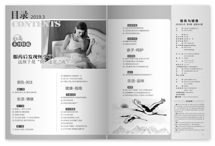 《婚育與健康》主要欄目:卷首語、本刊特稿、女子保健、優生指南、情緣在線、孕育新知等。