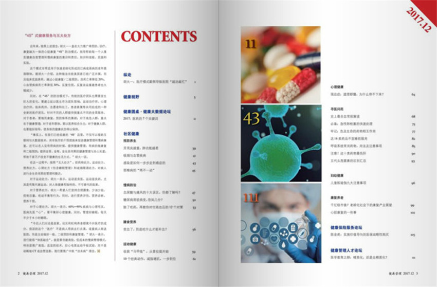 弘揚先進的健康管理理念,提高國民健康素質(zhì)。用通俗易懂,生動有趣的方式向有健康需求的國民普及健康管理的理念和方法,幫助國民科學地找到并去除減少健康危險因素,以活得更好、更長、更有意義。消費類健康科普期刊。結(jié)合日常生活中的健康/疾病預(yù)防問題介紹健康管理的相關(guān)理念、知識、方法、技能,大量介紹發(fā)達國家的先進理論與實踐。