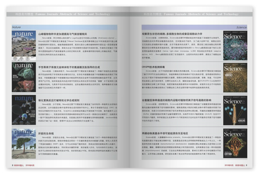 《科學中國人》主要欄目:中國人口老齡化問題、國際權威刊物關注、歐盟加強光予技術創新等。