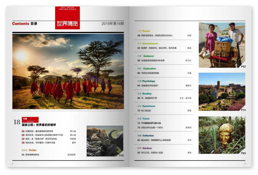 《世界博覽》主要欄目:思想文化18%、封面報道20%、歷史探幽15%、資訊交流17%等。