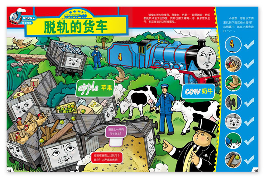 畫(huà)冊(cè)的主人公,托馬斯和他的朋友們是一群積極樂(lè)觀的小火車(chē),他們教會(huì)了孩子們處理問(wèn)題,解決問(wèn)題的方法,在培養(yǎng)孩子自信心的同事,增加了孩子的責(zé)任感和勇氣,是培養(yǎng)兒童高情商的優(yōu)秀少兒畫(huà)冊(cè)。