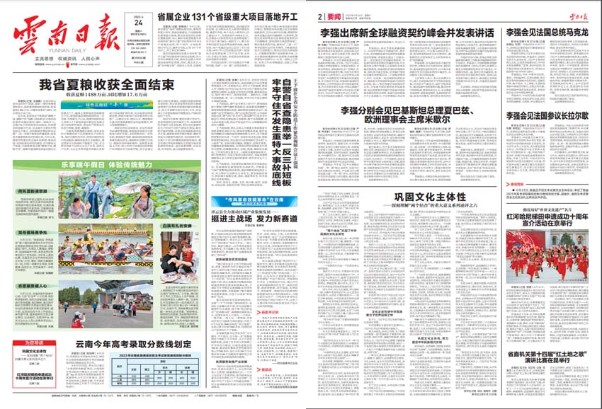 《云南日?qǐng)?bào)》是一份地方性的報(bào)紙,屬于中國(guó)云南省,它是一個(gè)有著良好聲譽(yù)的報(bào)紙,是新聞報(bào)道、經(jīng)濟(jì)分析和文化發(fā)展的權(quán)威,是云南省日?qǐng)?bào)的代表,是一份高品質(zhì)、高影響的新聞媒體,深受云南讀者的信任和喜愛。