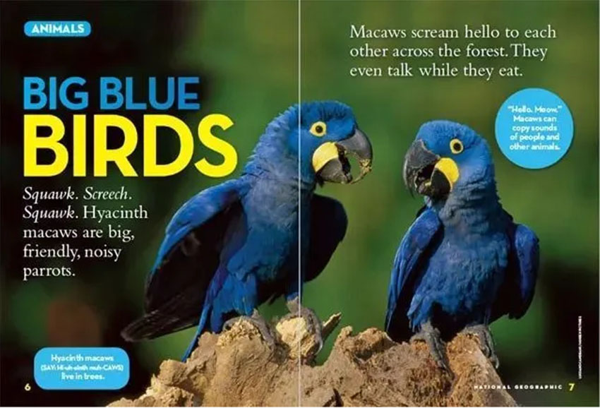 在讀物方面,《幼兒國家地理》雜志提供了多個(gè)故事、童謠、詩歌等內(nèi)容,故事涵蓋廣泛的主題和不同的文化背景,有的故事以趣味性和幽默感字拼成了全新的風(fēng)格;詩歌以簡單朗讀的方式呈現(xiàn),增加兒童口語表達(dá)的機(jī)會(huì)和語音聽覺的訓(xùn)練。