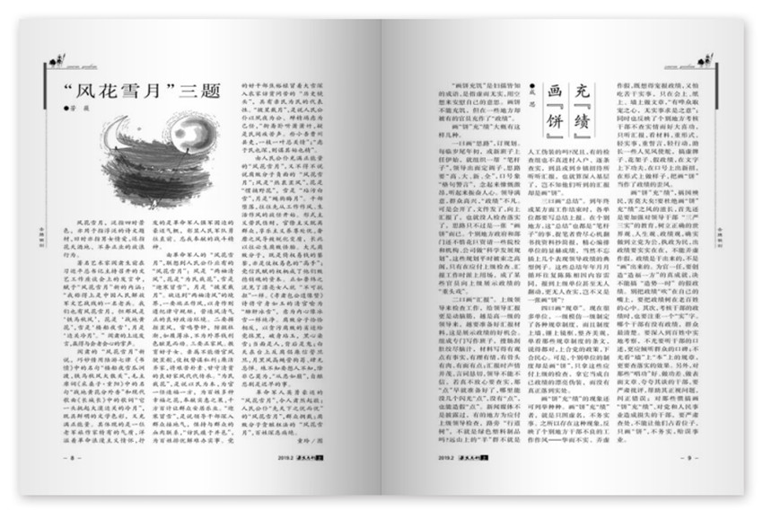 《雜文月刊》主要欄目:卷首縱筆、赤膊鍛劍、畫里有話、飛鏑鳴處、白說也說、原色空間等。